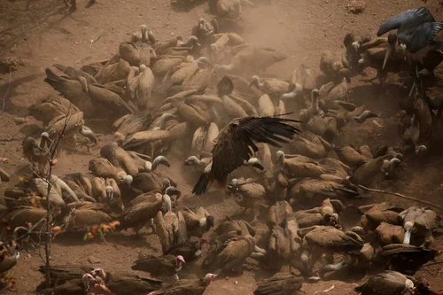 Once a vulture spots a carcass, it swoops down and begins to feed. Sometimes, multiple vultures will gather in the sky, circling a single spot. This behavior often signals the presence of food below and can attract other scavengers.